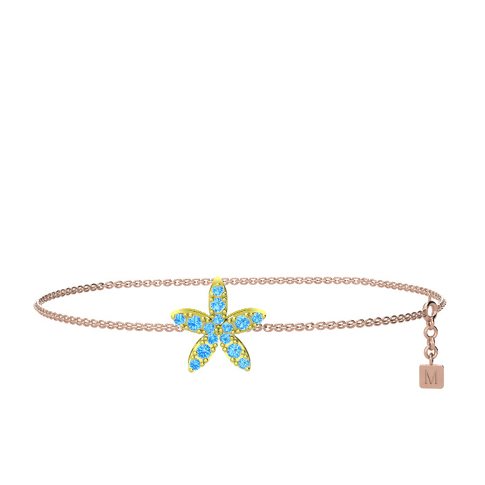 Akuamarin 925 ayar altın kaplama gümüş bilezik (40 cm gümüş rolo zincir)