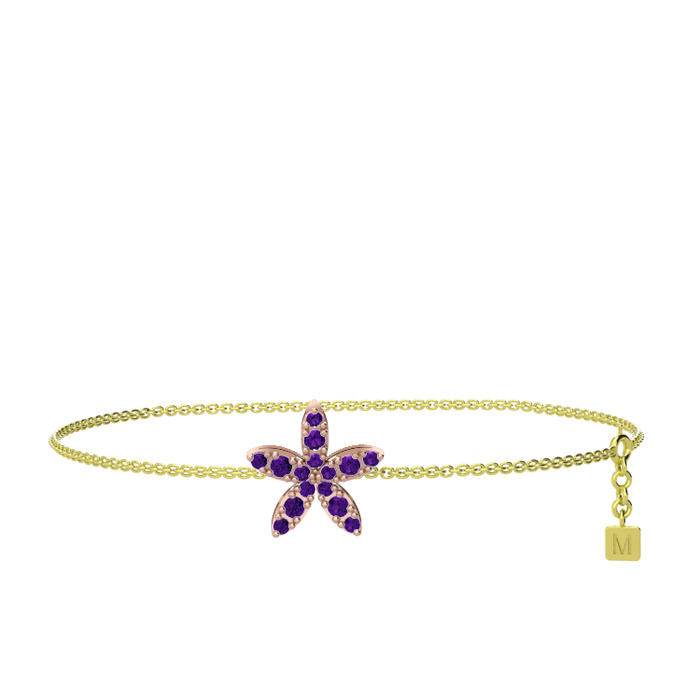 Ametist 8 ayar rose altın bilezik (40 cm altın rolo zincir)