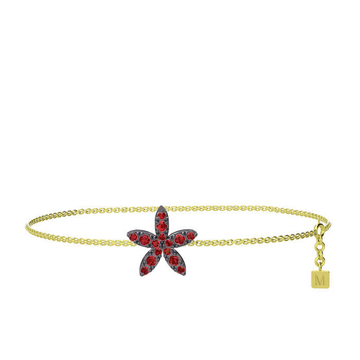 Garnet 925 ayar siyah rodyum kaplama gümüş bilezik (40 cm altın rolo zincir)