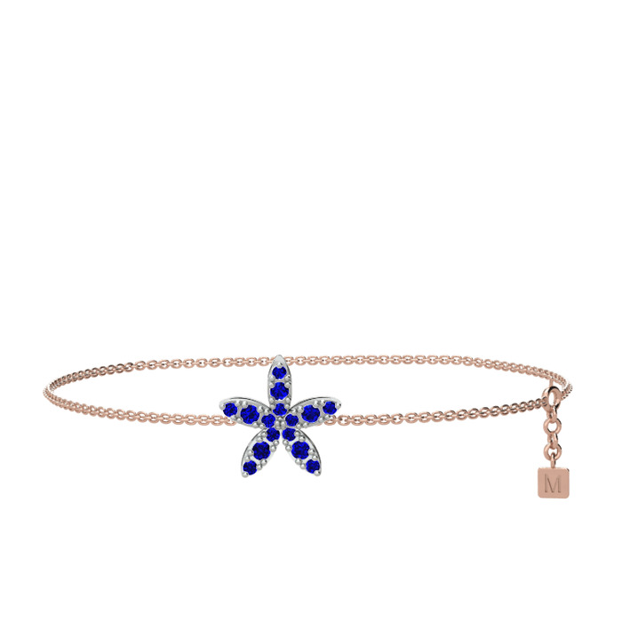 Lab safir 8 ayar beyaz altın bilezik (40 cm gümüş rolo zincir)