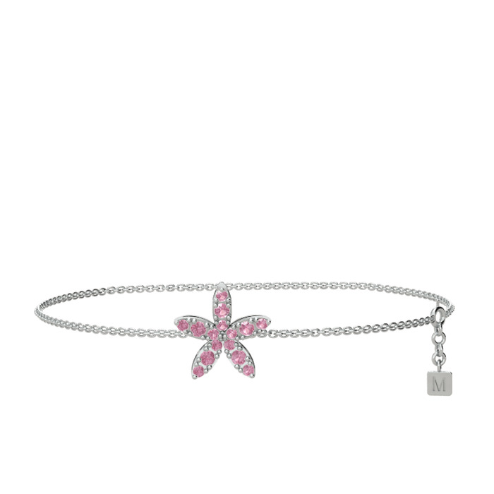 Pembe kuvars 8 ayar beyaz altın bilezik (40 cm beyaz altın rolo zincir)