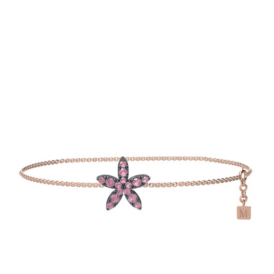 Pembe kuvars 925 ayar siyah rodyum kaplama gümüş bilezik (40 cm rose altın rolo zincir)