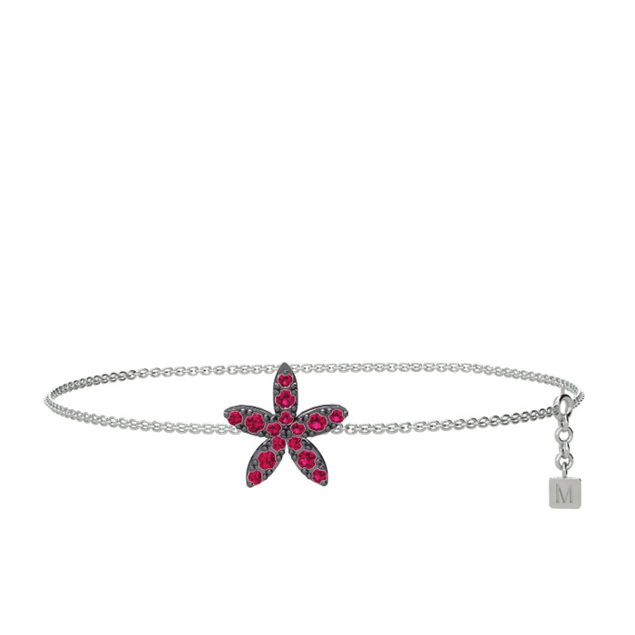 Rodolit garnet 925 ayar siyah rodyum kaplama gümüş bilezik (40 cm gümüş rolo zincir)