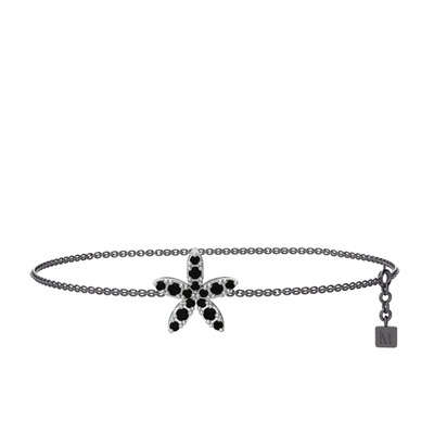 Siyah zirkon 14 ayar beyaz altın bilezik (40 cm gümüş rolo zincir)