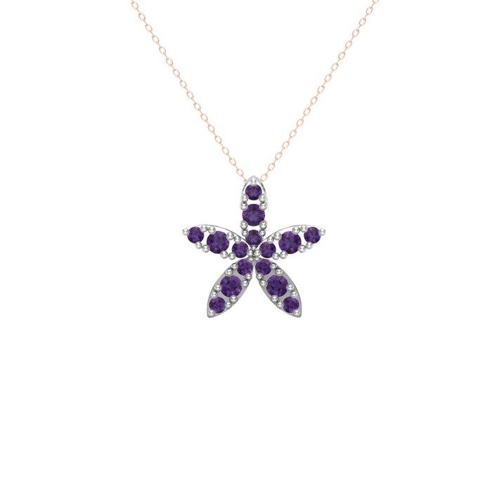 Ametist 18 ayar beyaz altın kolye (40 cm rose altın rolo zincir)