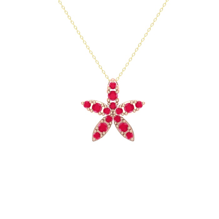 Kök yakut 14 ayar rose altın kolye (40 cm altın rolo zincir)