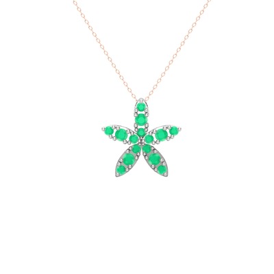 Kök zümrüt 8 ayar beyaz altın kolye (40 cm rose altın rolo zincir)