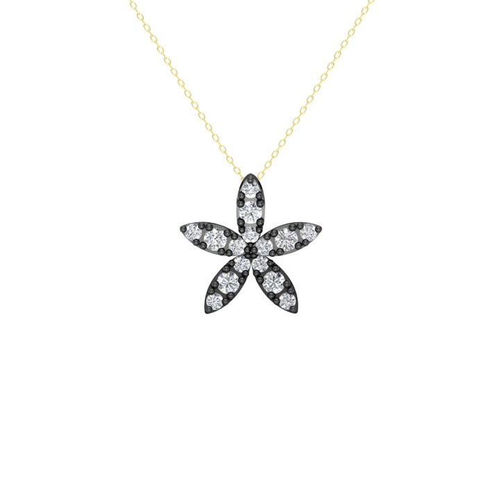 Pırlanta 925 ayar siyah rodyum kaplama gümüş kolye (0.3 karat, 40 cm altın rolo zincir)