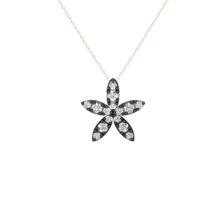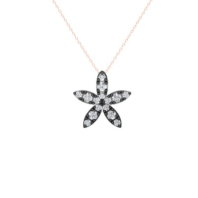 Pırlanta 925 ayar siyah rodyum kaplama gümüş kolye (0.3 karat, 40 cm rose altın rolo zincir)