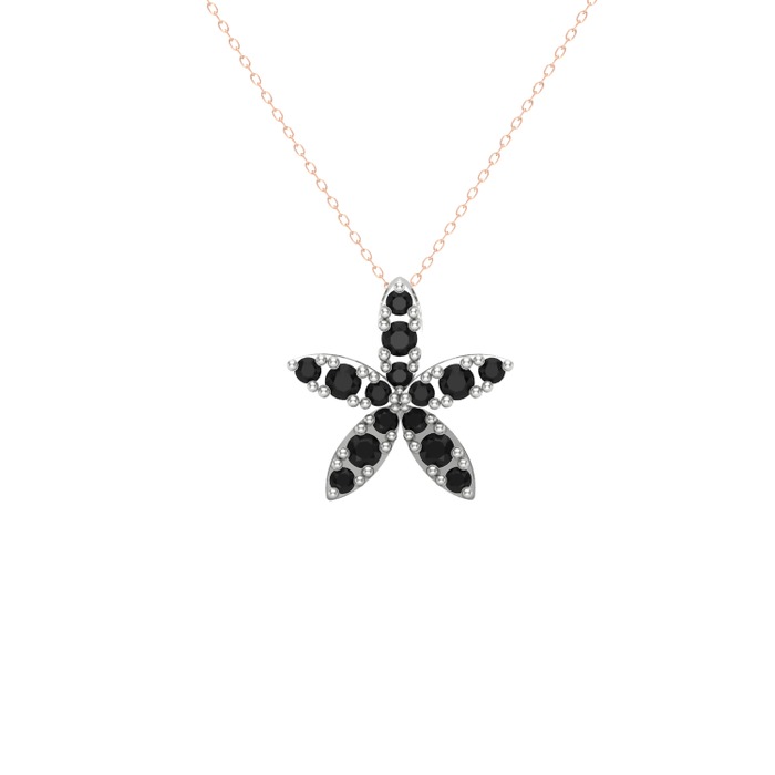 Siyah zirkon 18 ayar beyaz altın kolye (40 cm rose altın rolo zincir)
