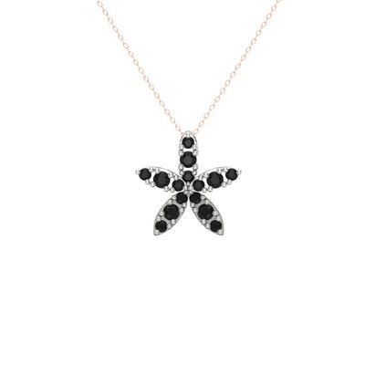 Siyah zirkon 925 ayar gümüş kolye (40 cm rose altın rolo zincir)