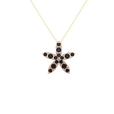 Siyah zirkon 925 ayar rose altın kaplama gümüş kolye (40 cm altın rolo zincir)