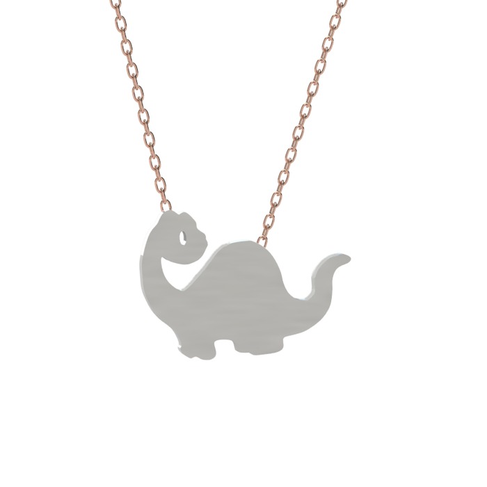 Yavru Dinozor Kolye - 18 ayar beyaz altın kolye (40 cm gümüş rolo zincir)
