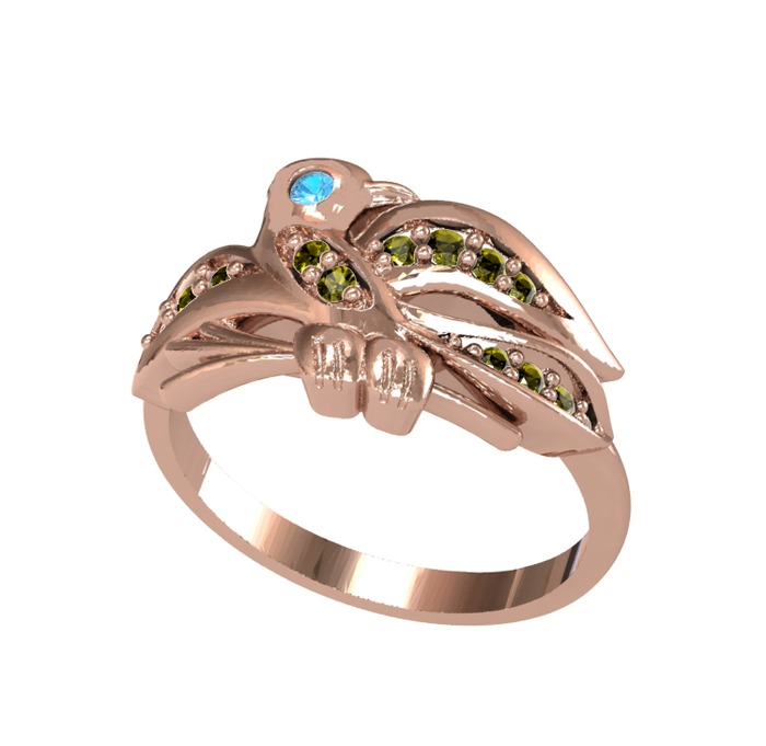 Akuamarin ve peridot 925 ayar rose altın kaplama gümüş yüzük