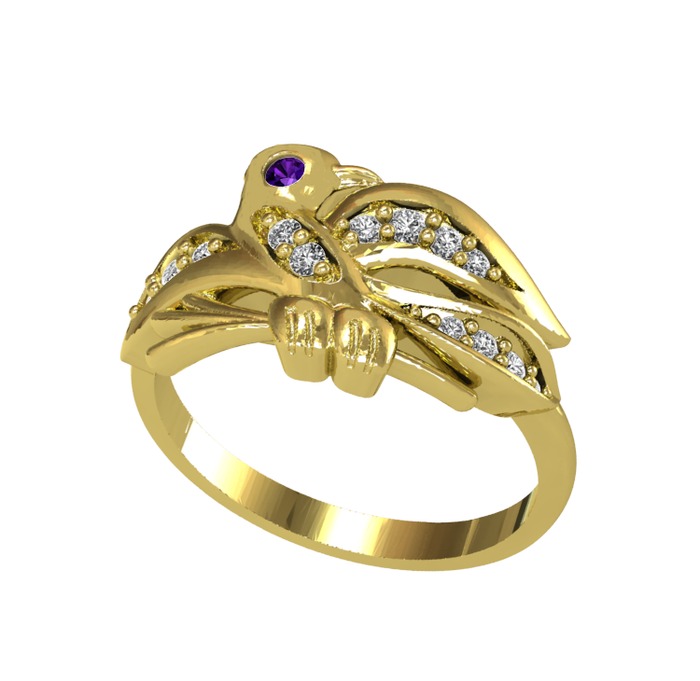 Ametist ve beyaz zirkon 14 ayar altın yüzük