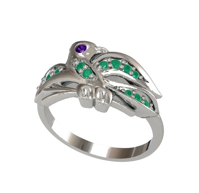 Ametist ve kök zümrüt 8 ayar beyaz altın yüzük