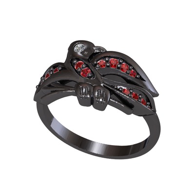 Elmas ve garnet 925 ayar siyah rodyum kaplama gümüş yüzük (0.02 karat)