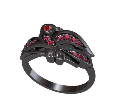 Garnet ve rodolit garnet 925 ayar siyah rodyum kaplama gümüş yüzük