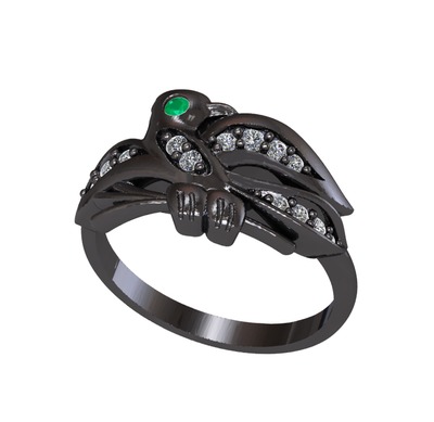 Kök zümrüt ve elmas 925 ayar siyah rodyum kaplama gümüş yüzük (0.195 karat)