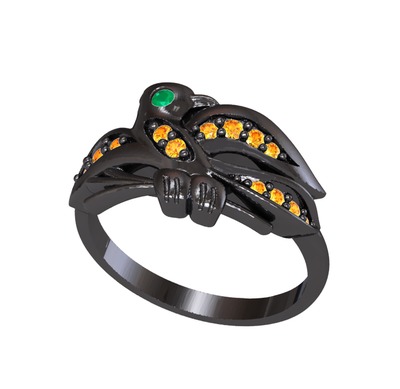 Kök zümrüt ve sitrin 925 ayar siyah rodyum kaplama gümüş yüzük