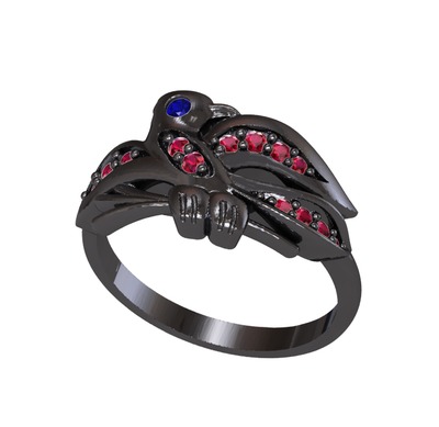 Lab safir ve rodolit garnet 925 ayar siyah rodyum kaplama gümüş yüzük