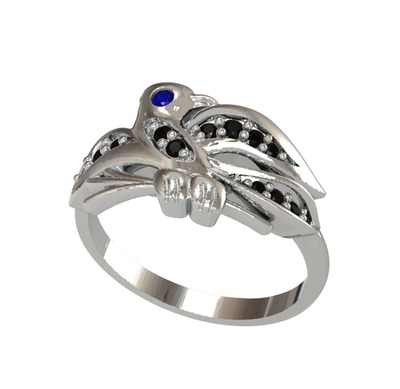 Lab safir ve siyah zirkon 925 ayar gümüş yüzük