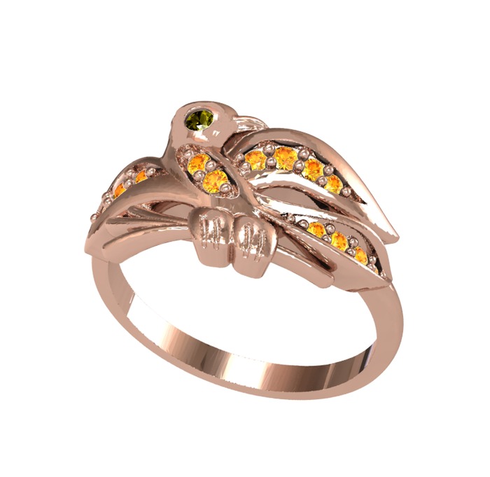 Peridot ve sitrin 925 ayar rose altın kaplama gümüş yüzük