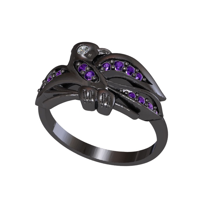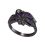 Pırlanta ve ametist 925 ayar siyah rodyum kaplama gümüş yüzük (0.02 karat)