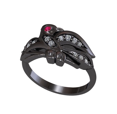 Rodolit garnet ve elmas 925 ayar siyah rodyum kaplama gümüş yüzük (0.195 karat)