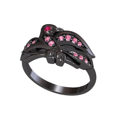 Rodolit garnet ve pembe kuvars 925 ayar siyah rodyum kaplama gümüş yüzük