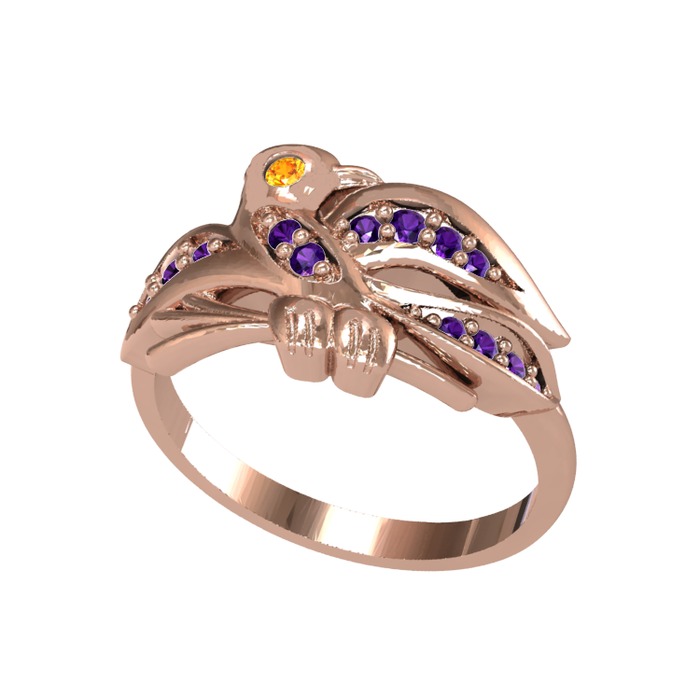 Sitrin ve ametist 14 ayar rose altın yüzük