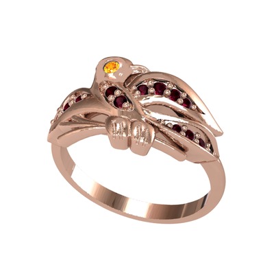 Sitrin ve kök yakut 14 ayar rose altın yüzük