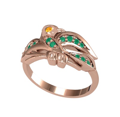 Sitrin ve kök zümrüt 18 ayar rose altın yüzük