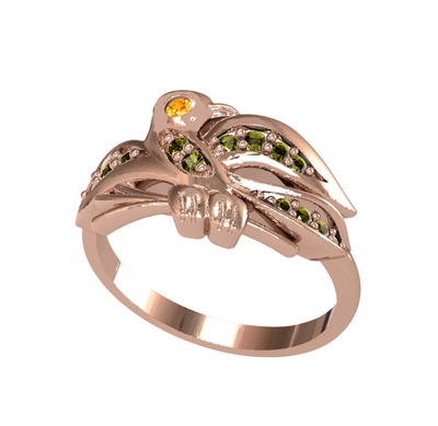 Sitrin ve peridot 18 ayar rose altın yüzük
