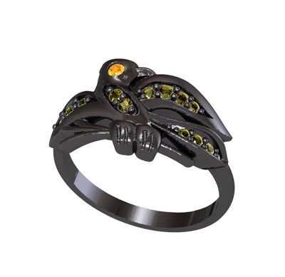 Sitrin ve peridot 925 ayar siyah rodyum kaplama gümüş yüzük