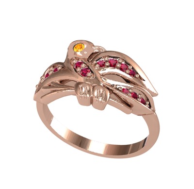Sitrin ve rodolit garnet 14 ayar rose altın yüzük