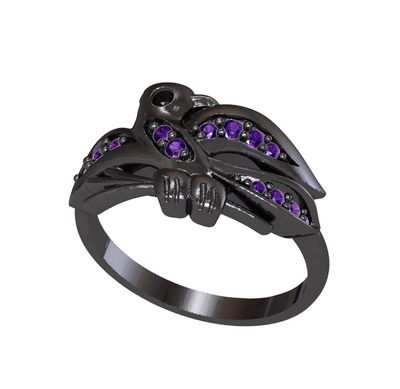 Siyah zirkon ve ametist 925 ayar siyah rodyum kaplama gümüş yüzük