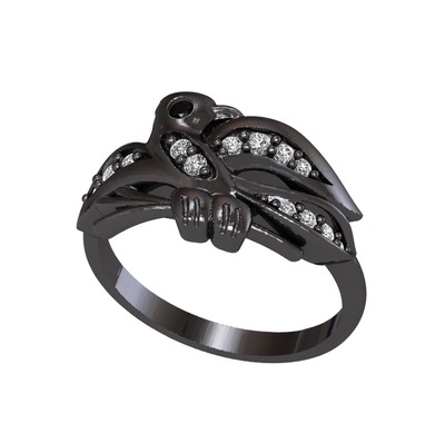 Siyah zirkon ve beyaz zirkon 925 ayar siyah rodyum kaplama gümüş yüzük