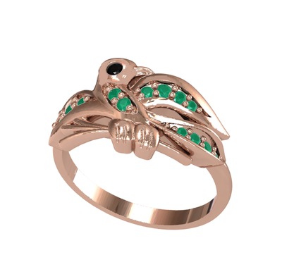 Siyah zirkon ve kök zümrüt 14 ayar rose altın yüzük