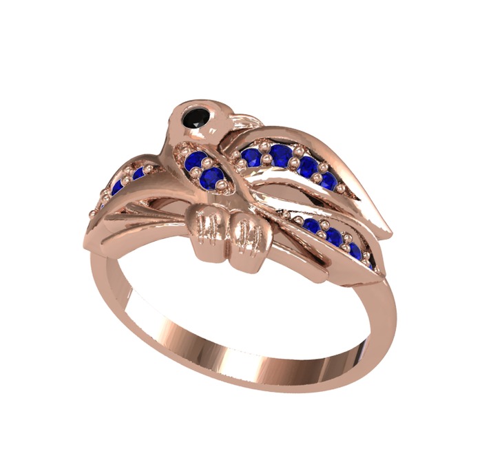 Siyah zirkon ve lab safir 14 ayar rose altın yüzük