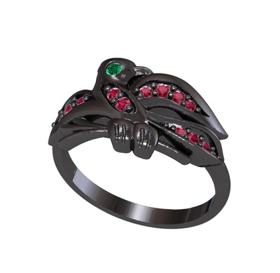 Yeşil kuvars ve rodolit garnet 925 ayar siyah rodyum kaplama gümüş yüzük
