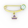 925 ayar altın kaplama gümüş nazar iğnesi (Pastel mavi mineli)