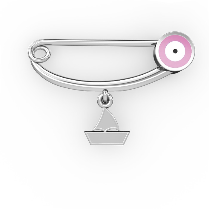 Yelkenli Yuvarlak Nazar İğnesi - 925 ayar gümüş nazar iğnesi (Pastel pembe mineli)
