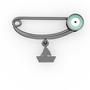 925 ayar siyah rodyum kaplama gümüş nazar iğnesi (Pastel mavi mineli)