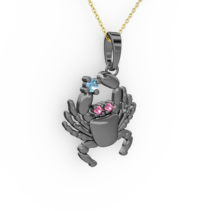 Akuamarin ve pembe kuvars 925 ayar siyah rodyum kaplama gümüş kolye (40 cm altın rolo zincir)