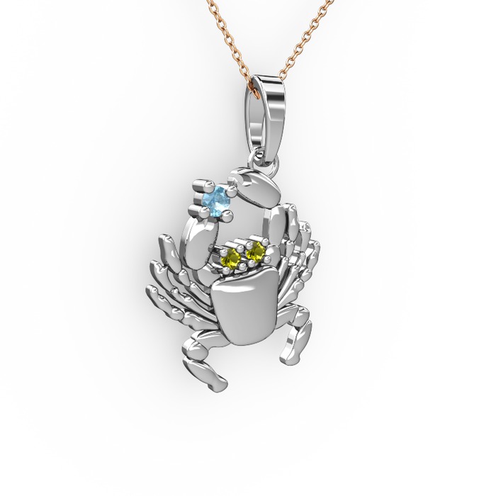 Akuamarin ve peridot 925 ayar gümüş kolye (40 cm rose altın rolo zincir)