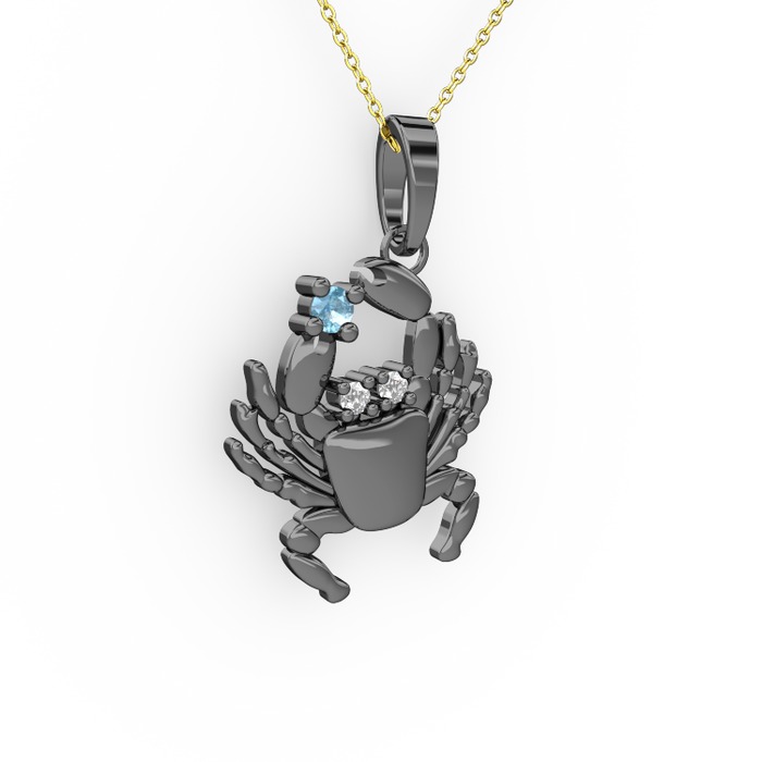 Akuamarin ve pırlanta 925 ayar siyah rodyum kaplama gümüş kolye (0.03 karat, 40 cm gümüş rolo zincir)