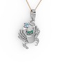 Akuamarin ve yeşil kuvars 18 ayar beyaz altın kolye (40 cm rose altın rolo zincir)