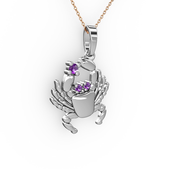 Ametist 18 ayar beyaz altın kolye (40 cm rose altın rolo zincir)