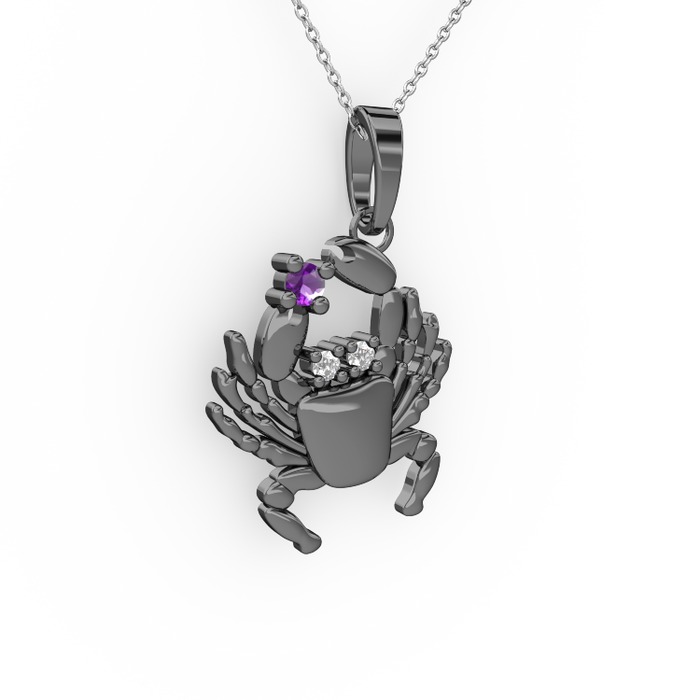 Ametist ve pırlanta 925 ayar siyah rodyum kaplama gümüş kolye (0.03 karat, 40 cm gümüş rolo zincir)